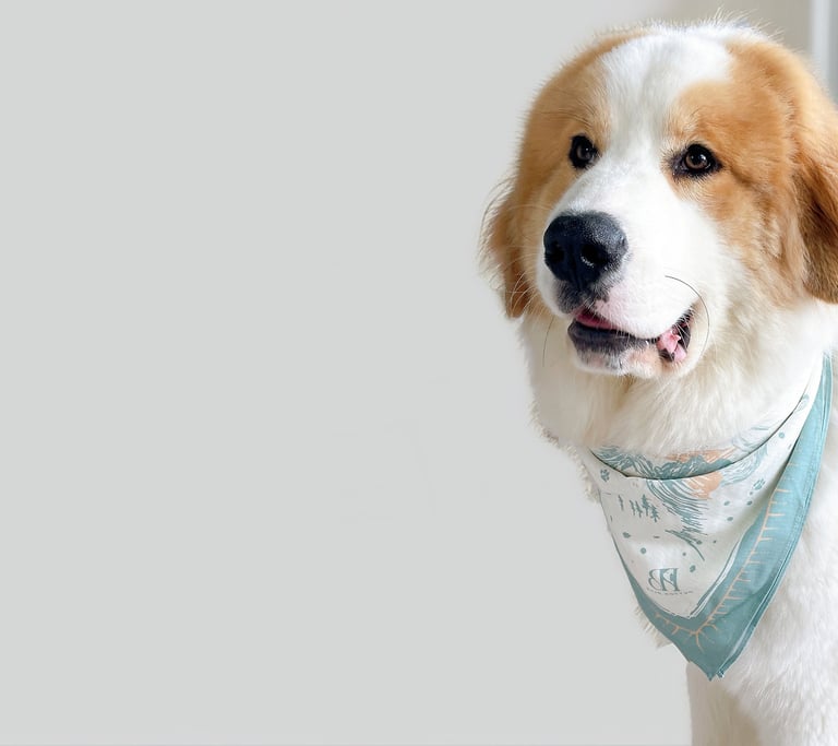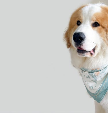 I spend my days supervising my humans in the studio (translation: napping nearby), testing every bandana for maximum softness and shake-proof performance, and reminding everyone when it’s walk o’clock. I’m a Great Bernese with a gentle heart, a big personality, and an even bigger tail that knocks over approximately three things a day.